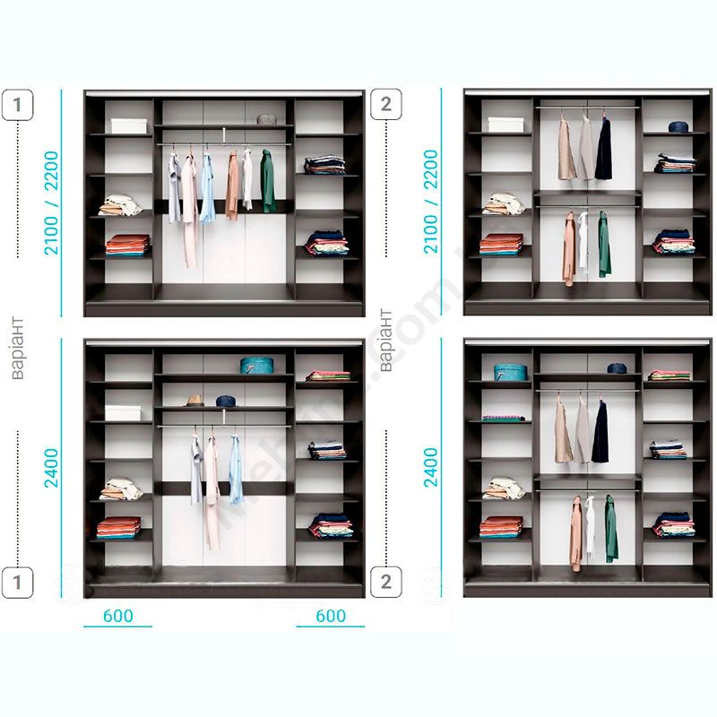 Тридверна або чотиридверна шафа-купе шириною 260 см, глибиною 60 см, висотою 210, 220 чи 240 см.