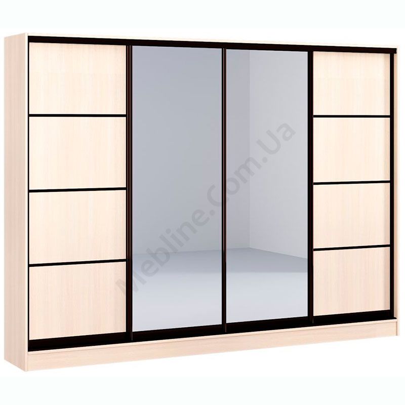 Чотиридверна шафа-купе шириною 280 см, глибиною 45 см, висотою 210, 220 чи 240 см.
