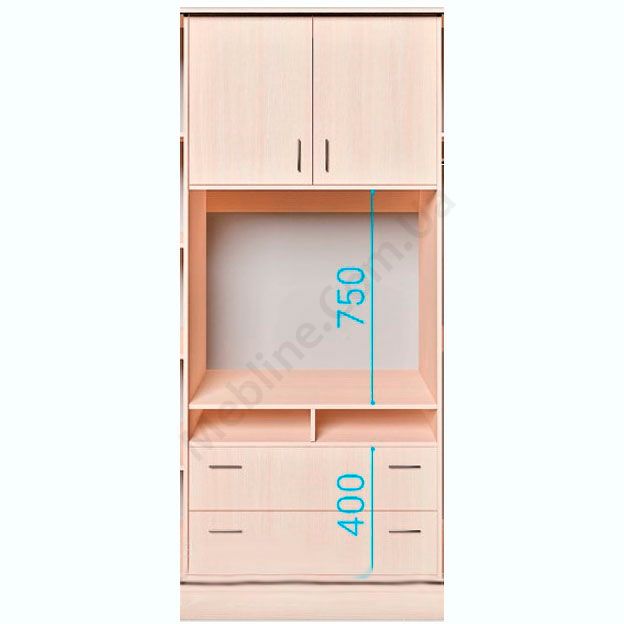 Секція з нішею під телевізор шириною 90,1 см, глибиною 45 см, висотою 210, 220 чи 240 см.