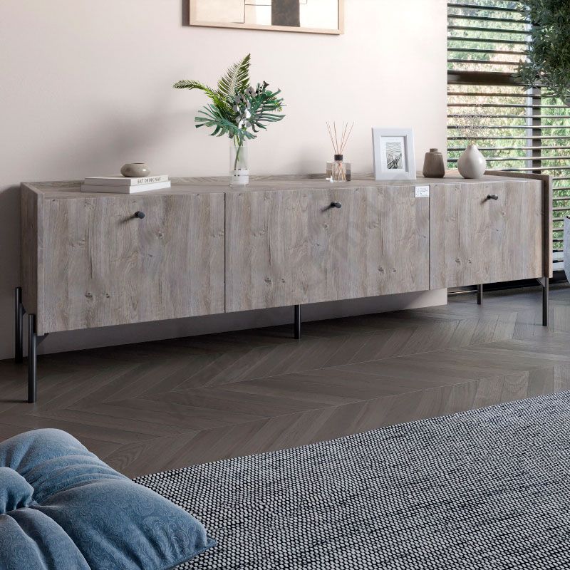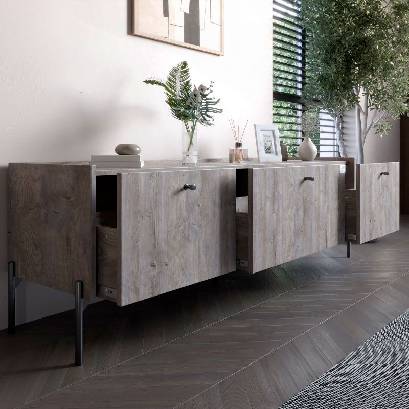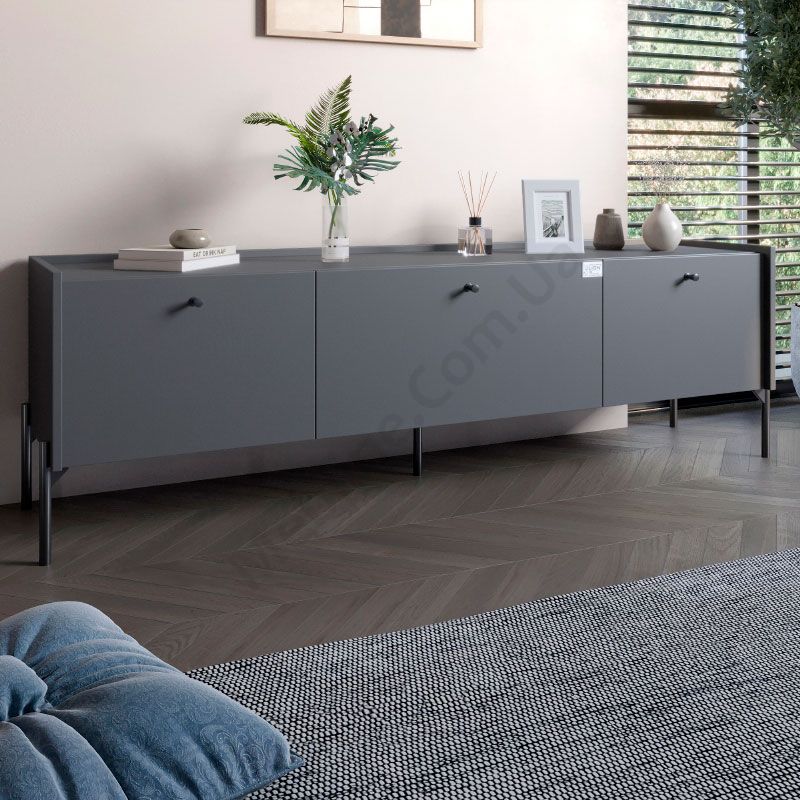 Тумба під телевізор з висувними шухлядами на металевих ніжках.