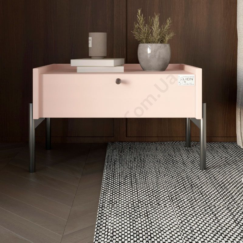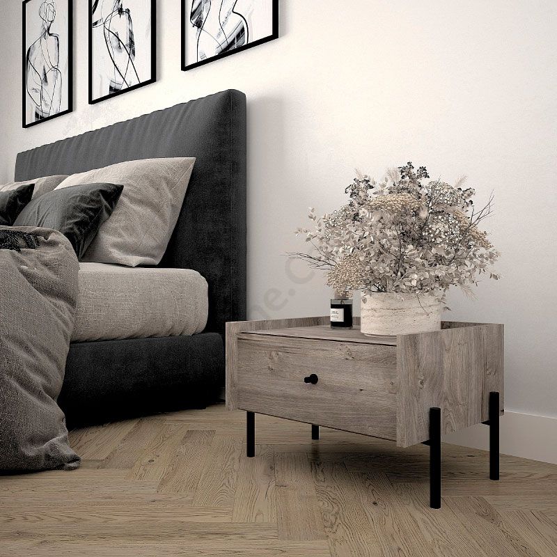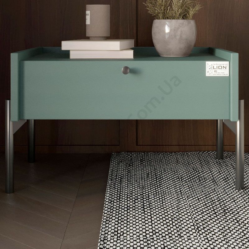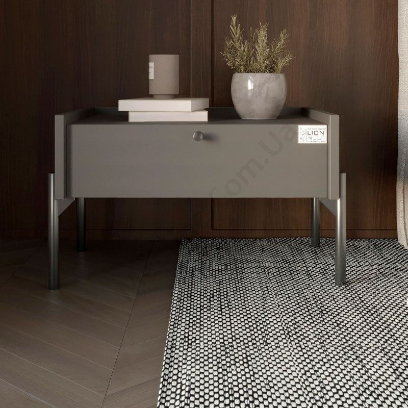 Приліжкова тумба з висувною шухлядою на металевих ніжках.