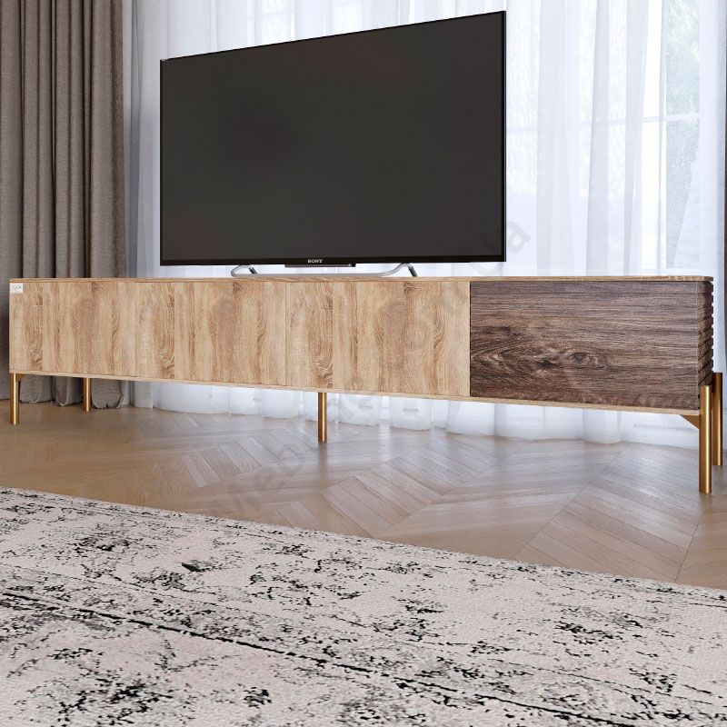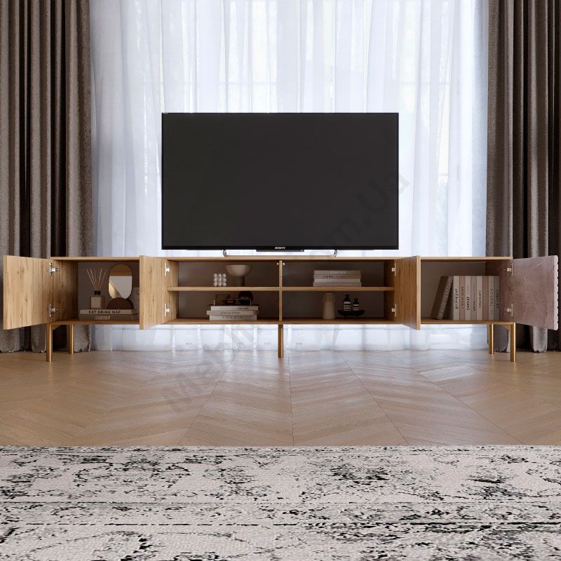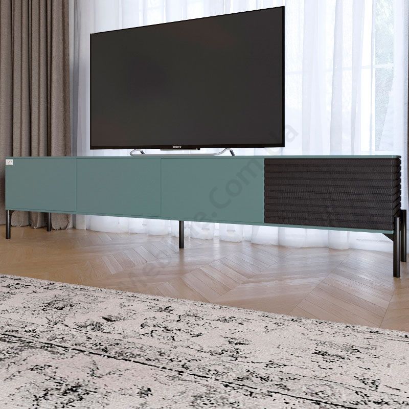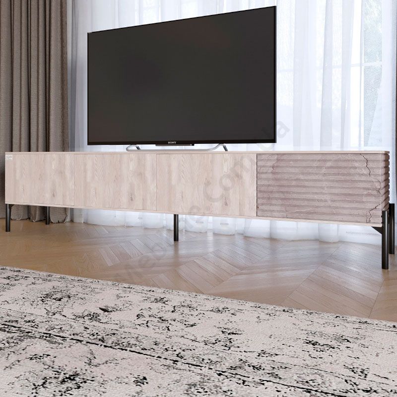 Тумба під телевізор на металевих ніжках з дверцятами.