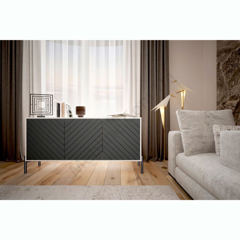 Тумба під телевізор на металевих ніжках з дверцятами.