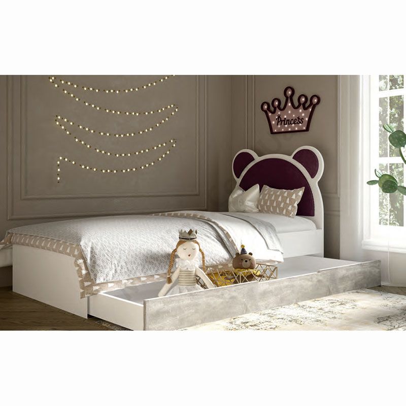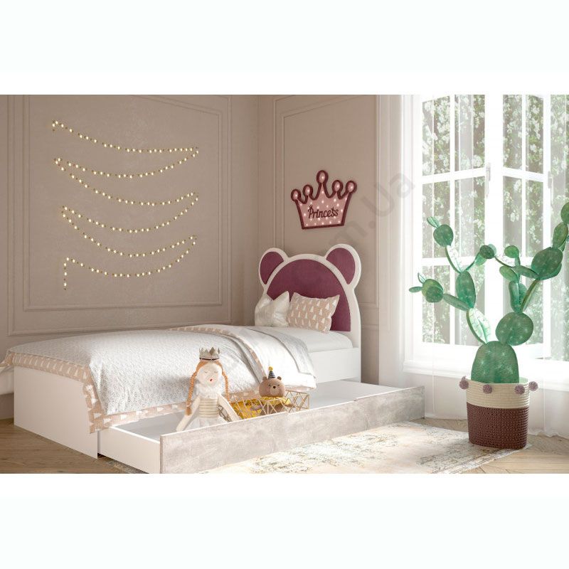 Дитяче ліжко з шухлядою та узголів’ям у вигляді ведмедя.
