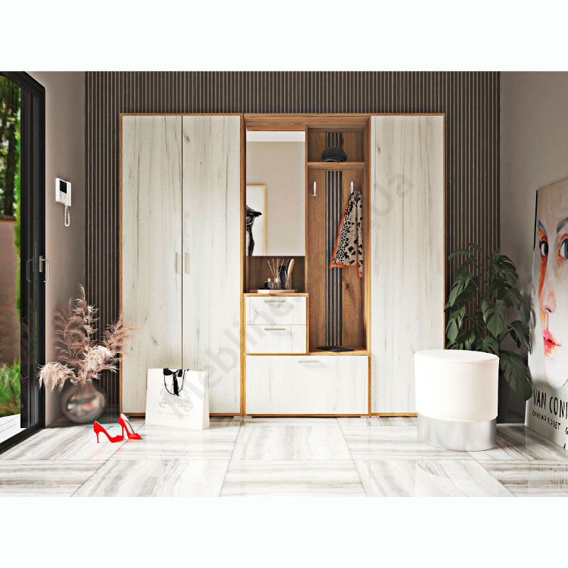Вішак з дзеркальною шафкою та тумбою для взуття.