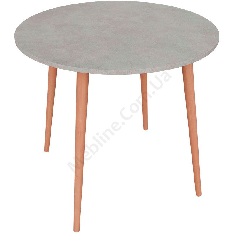 Круглий нерозкладний обідній стіл на чотирьох ніжках.