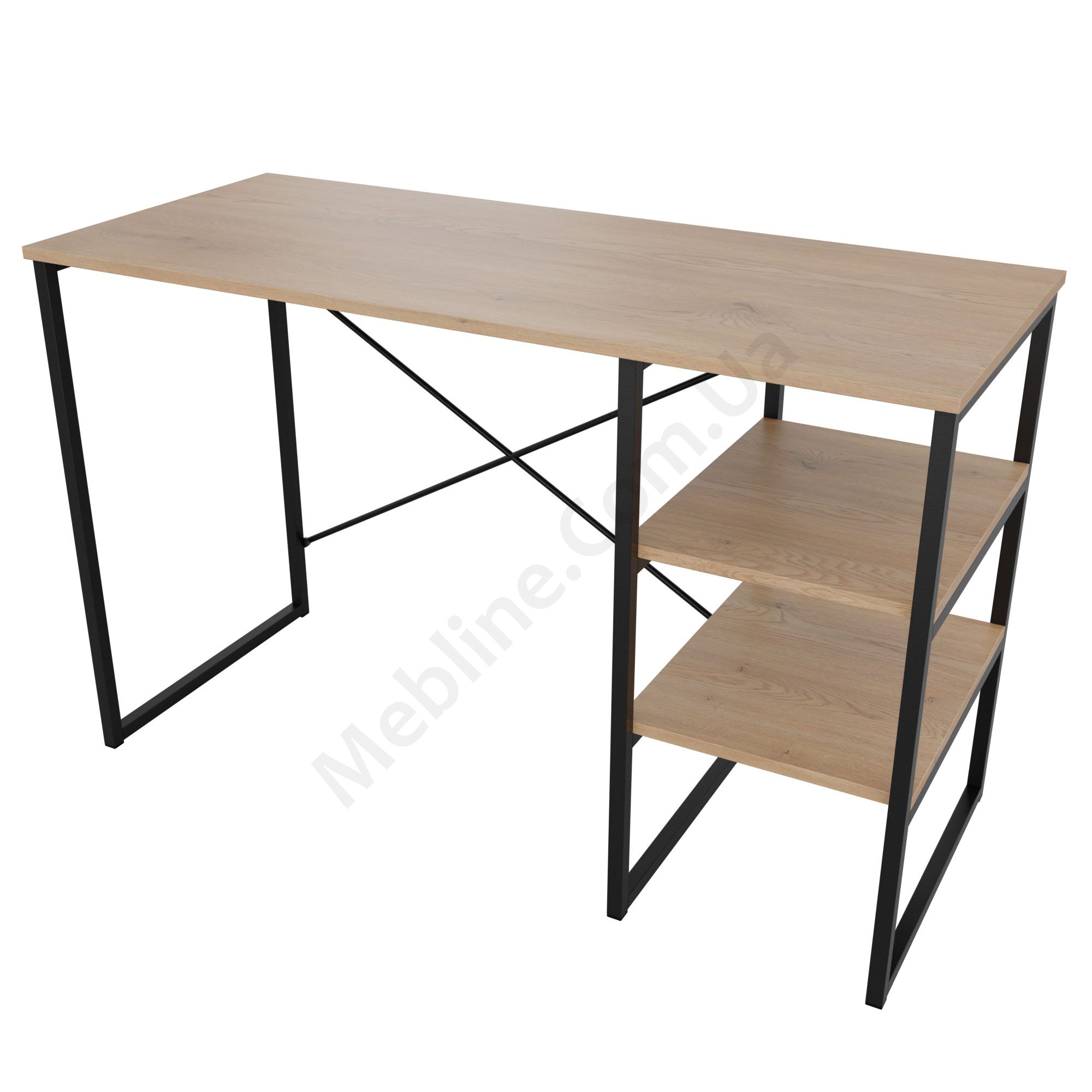 Комп’ютерний стіл на металевій основі з полицями.