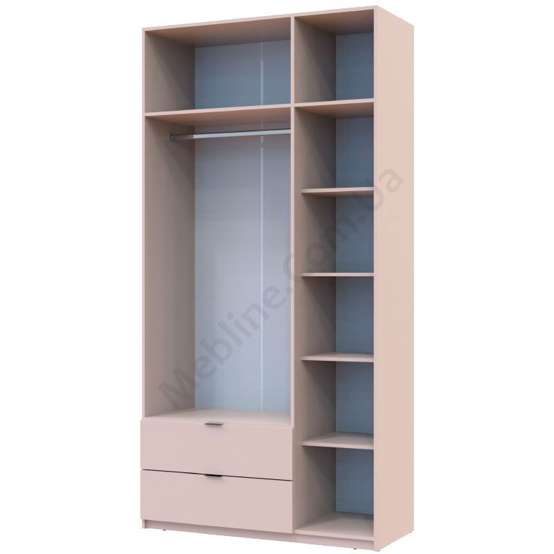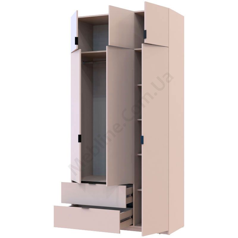 Розпашна тридверна шафа з висувними шухлядами та антресолями.