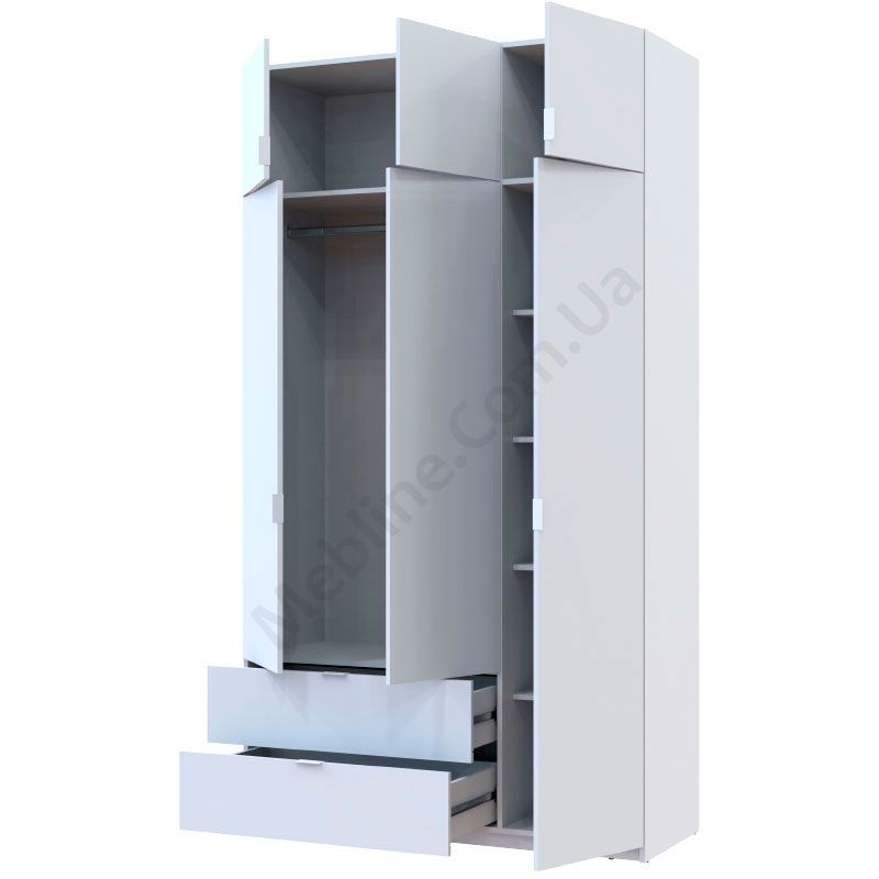 Розпашна тридверна шафа з висувними шухлядами та антресолями.