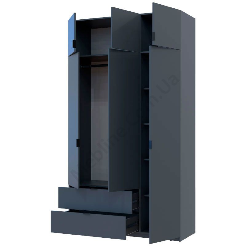 Розпашна тридверна шафа з висувними шухлядами та антресолями.