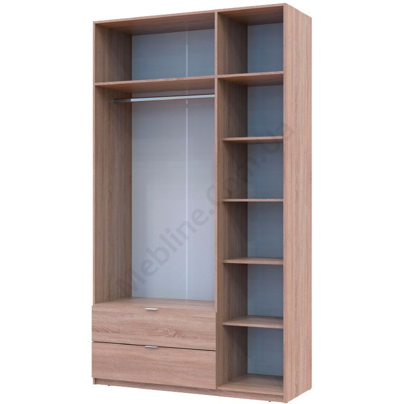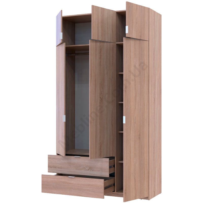 Розпашна тридверна шафа з висувними шухлядами та антресолями.