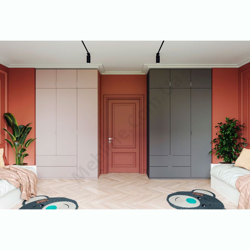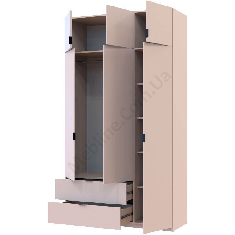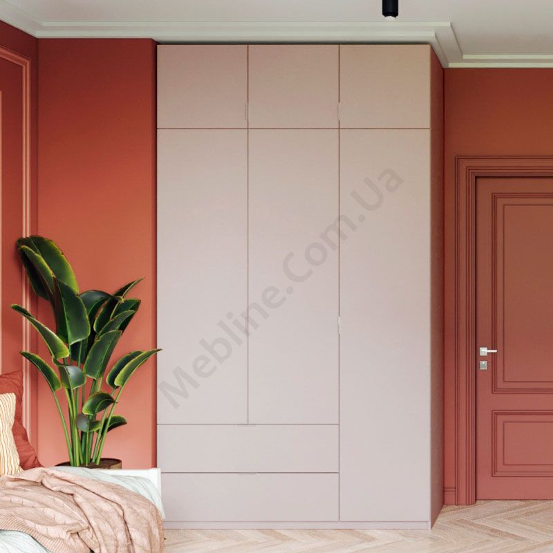 Розпашна тридверна шафа з висувними шухлядами та антресолями.