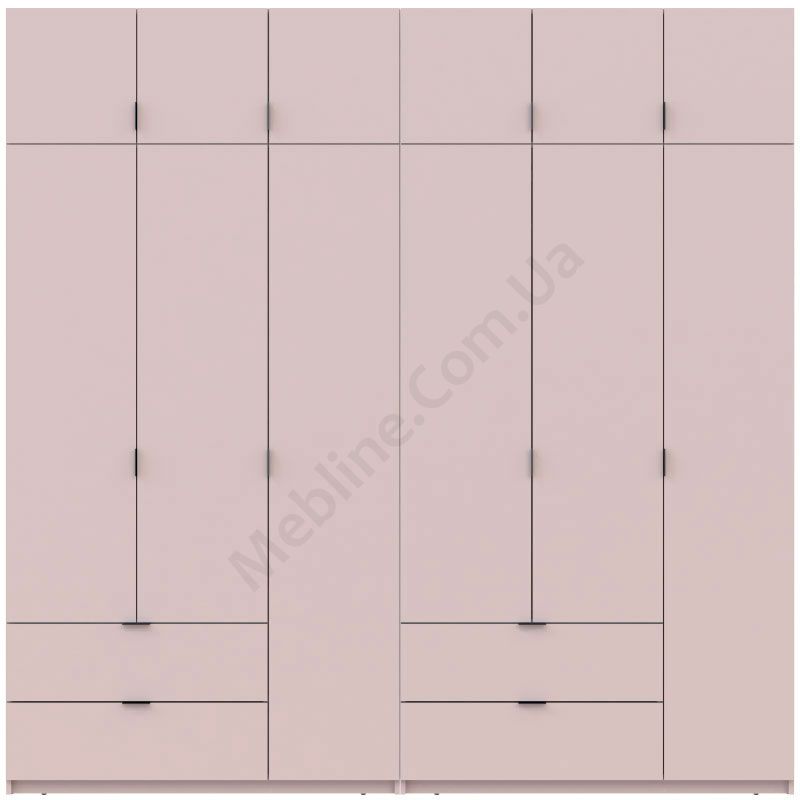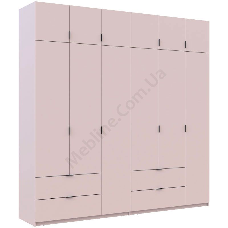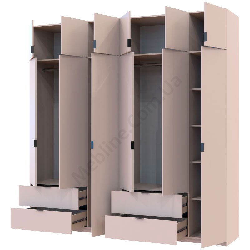 Розпашна шестидверна шафа з висувними шухлядами та антресолями.