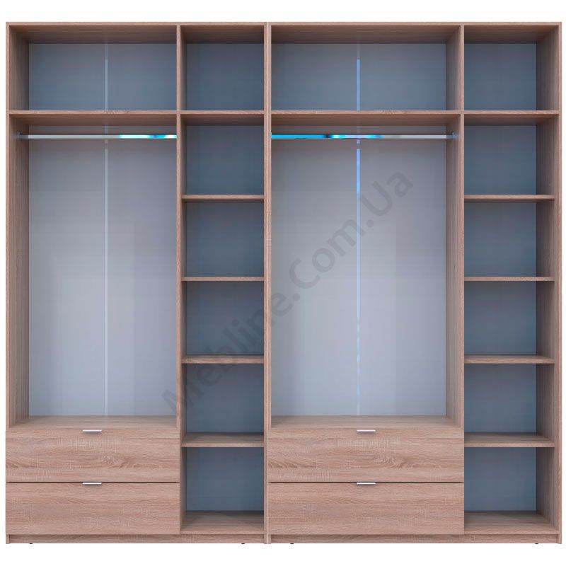 - За чотирма дверцятами по штанзі для одягу.