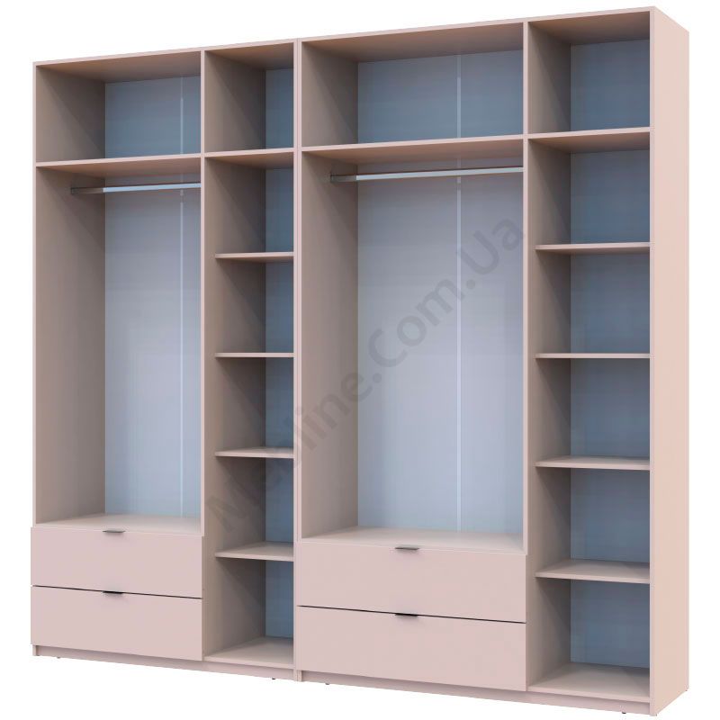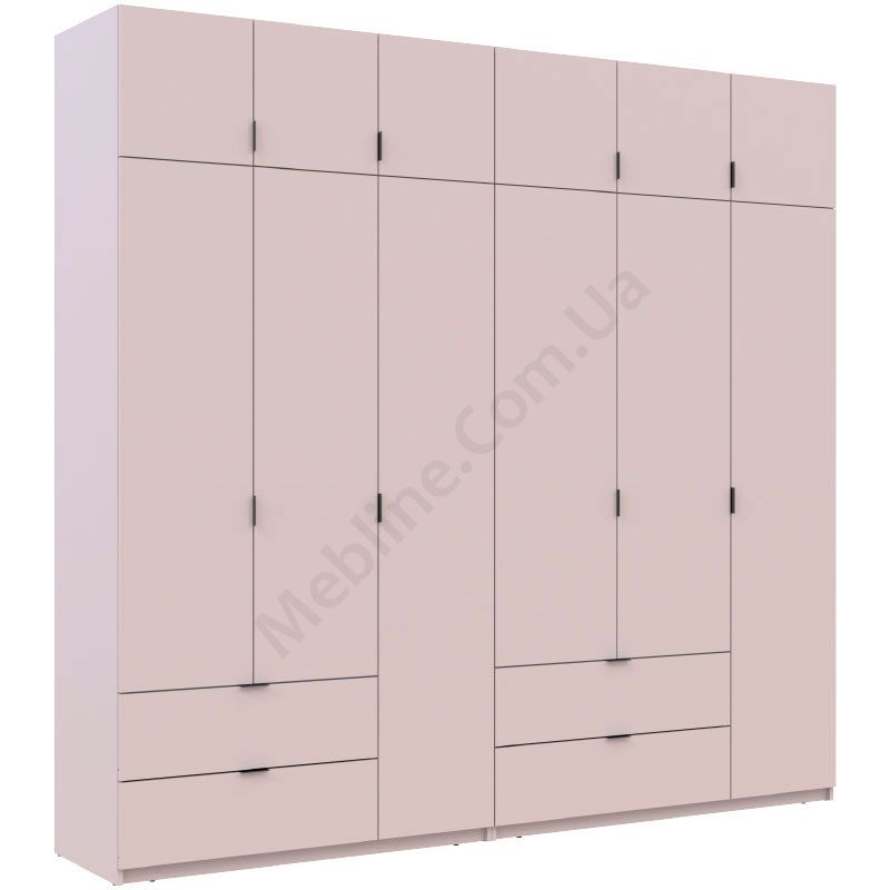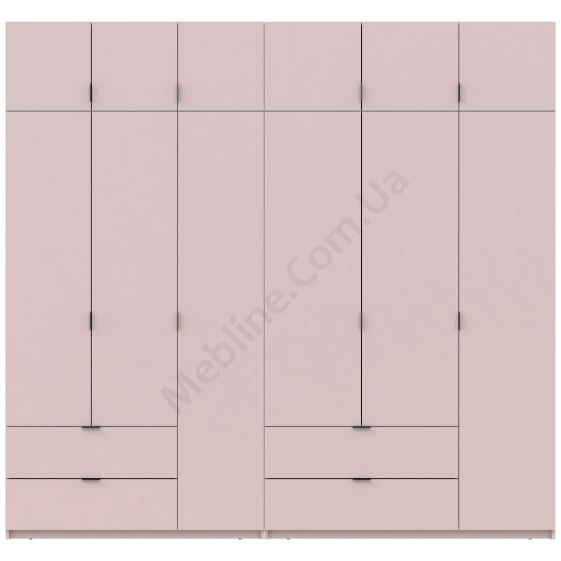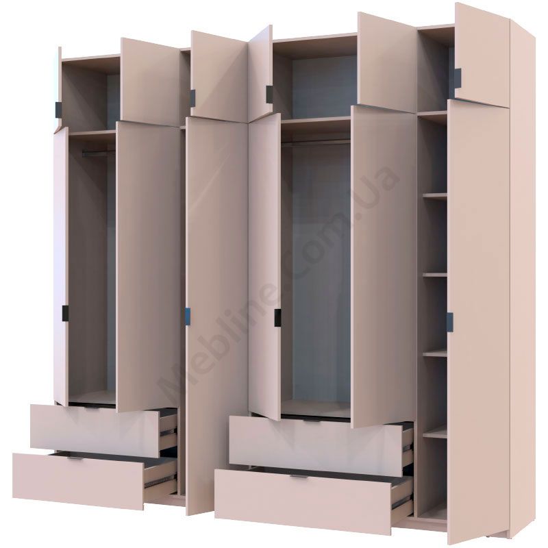 Розпашна шестидверна шафа з висувними шухлядами та антресолями.