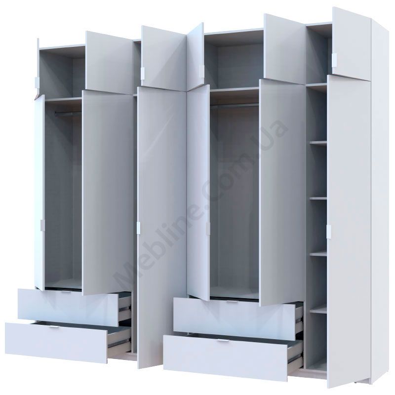 Розпашна шестидверна шафа з висувними шухлядами та антресолями.