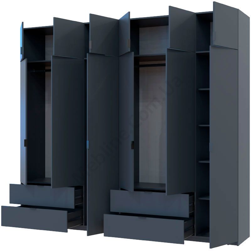 Розпашна шестидверна шафа з висувними шухлядами та антресолями.