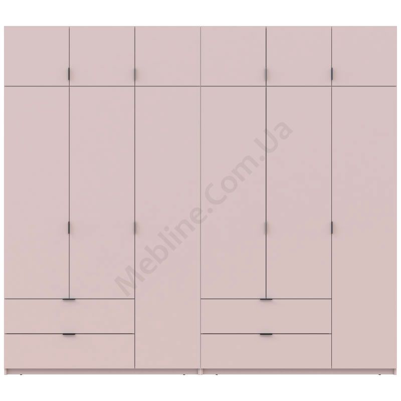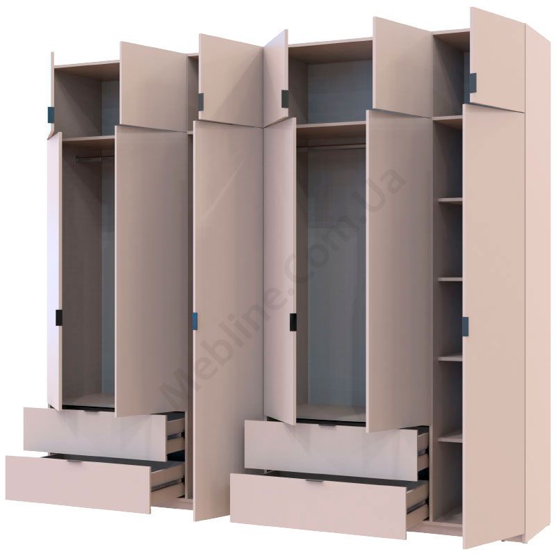 Розпашна шестидверна шафа з висувними шухлядами та антресолями.