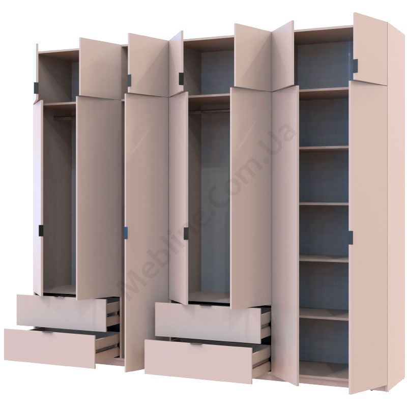 Розпашна семидверна шафа з висувними шухлядами та антресолями.