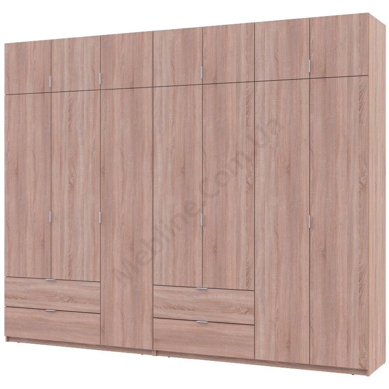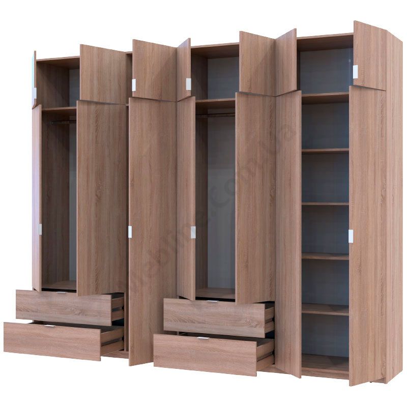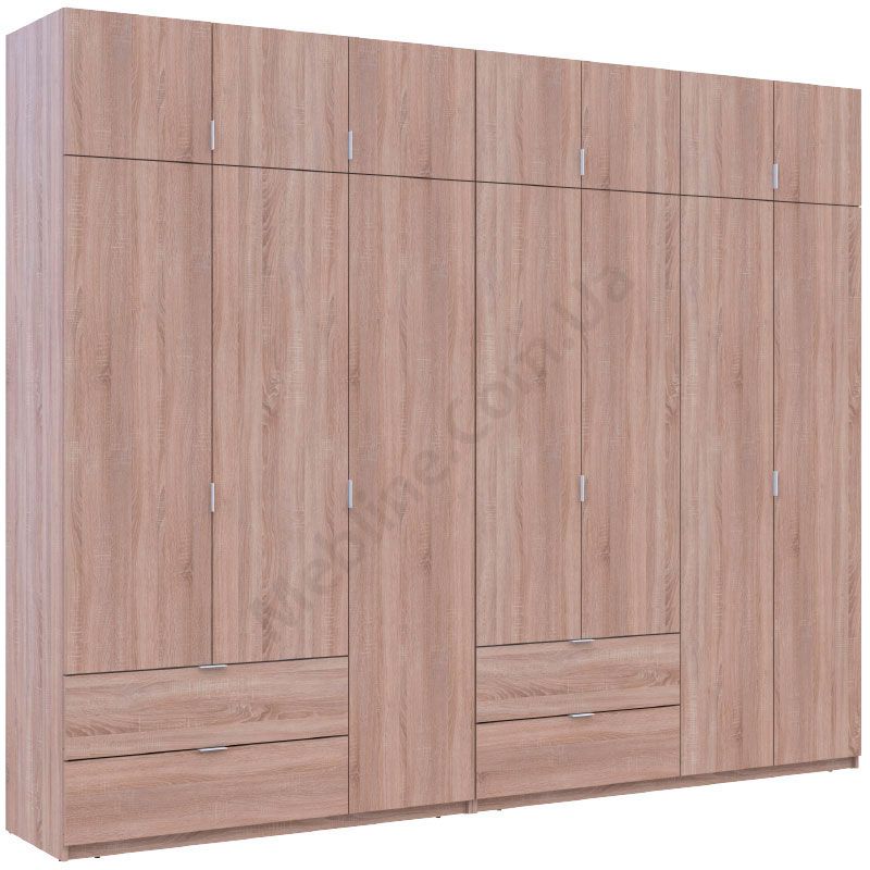 Розпашна семидверна шафа з висувними шухлядами та антресолями.