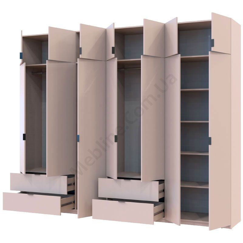 Розпашна семидверна шафа з висувними шухлядами та антресолями.