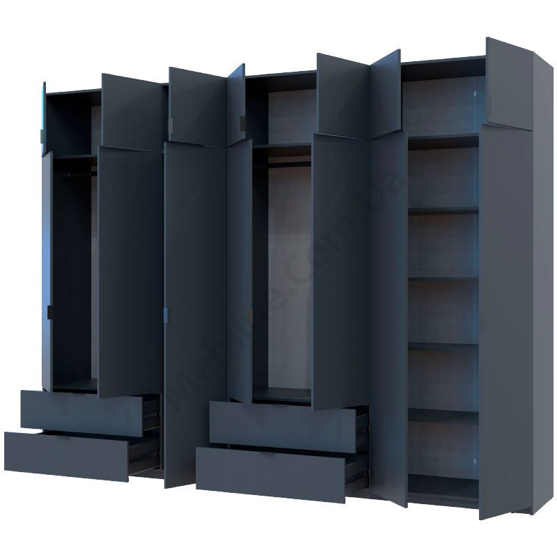 Розпашна семидверна шафа з висувними шухлядами та антресолями.