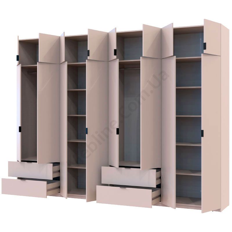 Розпашна восьмидверна шафа з висувними шухлядами та антресолями.