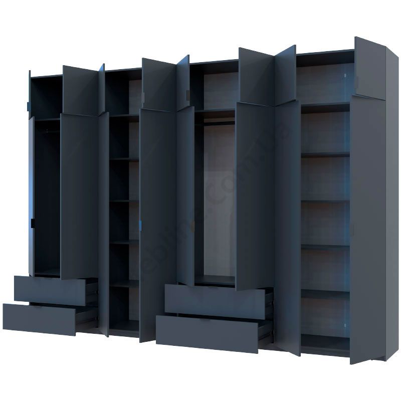 Розпашна восьмидверна шафа з висувними шухлядами та антресолями.