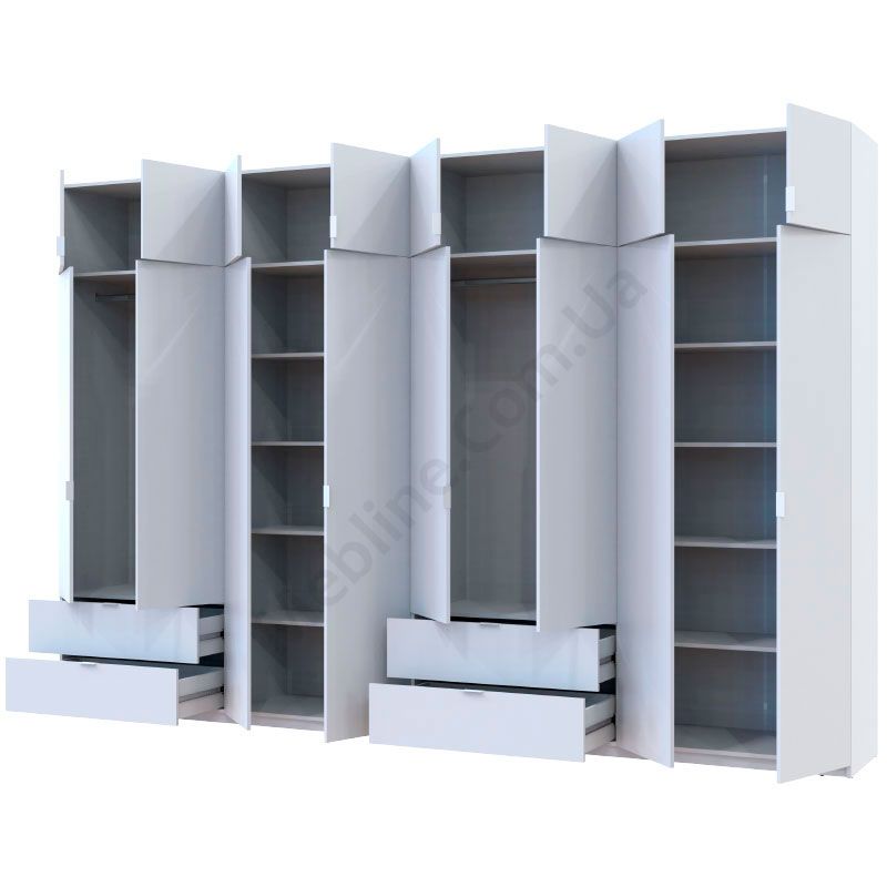 Розпашна восьмидверна шафа з висувними шухлядами та антресолями.