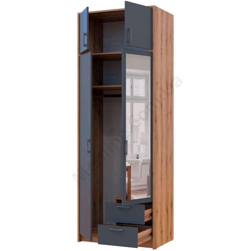 У магазині Ви можете купити Шафа для одягу Ронді з дзеркалом та антресоллю 2 ДСП Дуб Артизан + Графіт за доступною ціною та доставкою по всій Україні. Обирайте