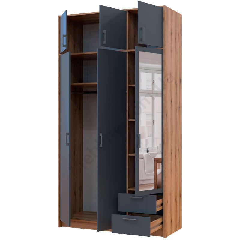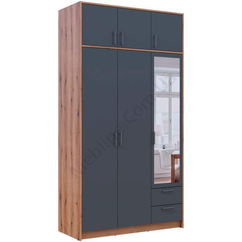 Шафа для одягу Ронді з дзеркалом та антресоллю 3 ДСП Дуб Артизан + Графіт