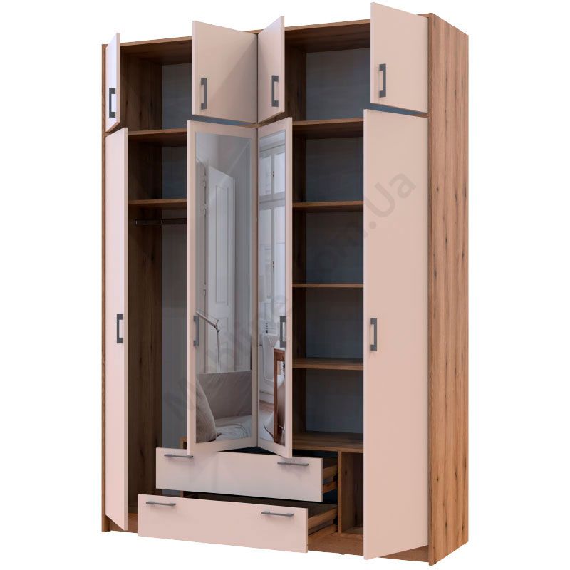 Шафа для одягу Ронді з дзеркалом та антресоллю 4 ДСП Дуб Артизан + Кашемір