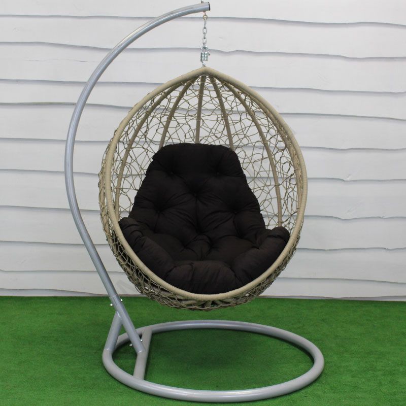 Плетене крісло кокон на посиленій металевій стійці чорного кольору.