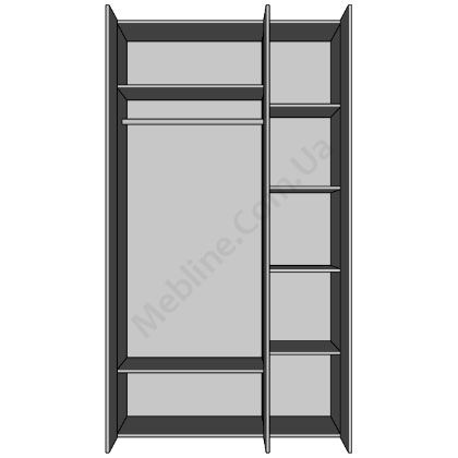 Тридверна шафа з дзеркалом, штангою та полицями.