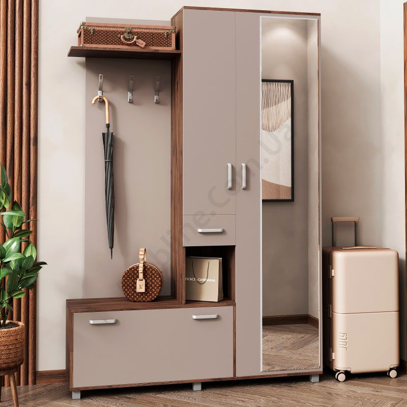 - Шафа з розпашними дверцятами, дзеркалом та висувною шухлядою.