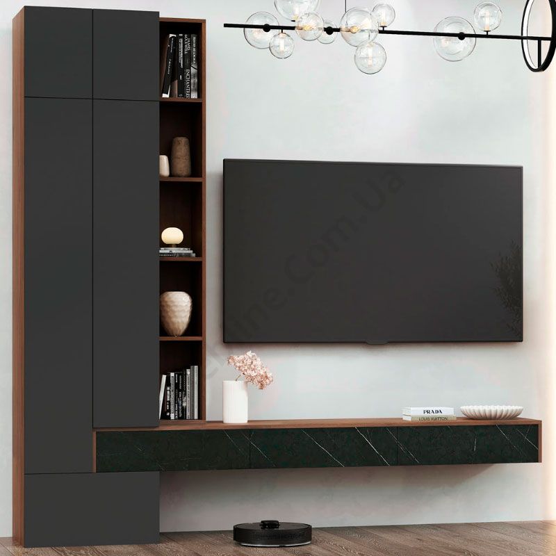 Стінка у вітальню з шафою та тумбою під телевізор.