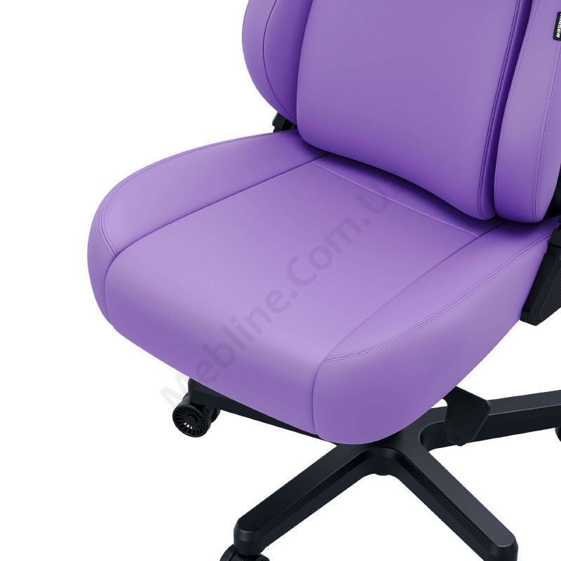 Геймерське крісло розміру L з бічною підтримкою, механізмом Multi-functional Tilt, вільним гойданням, шкіряною оббивкою фіолетового кольору, з ефектом пам’яті Memory Foam.