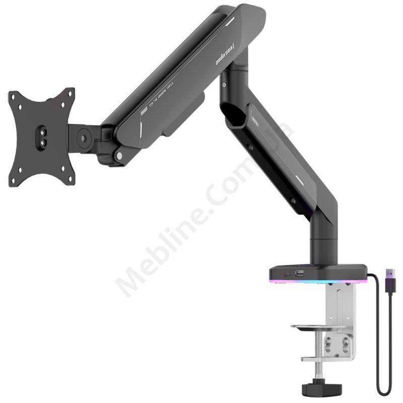Настільне кріплення для монітора чорного кольору з підсвічуванням та портами USB.