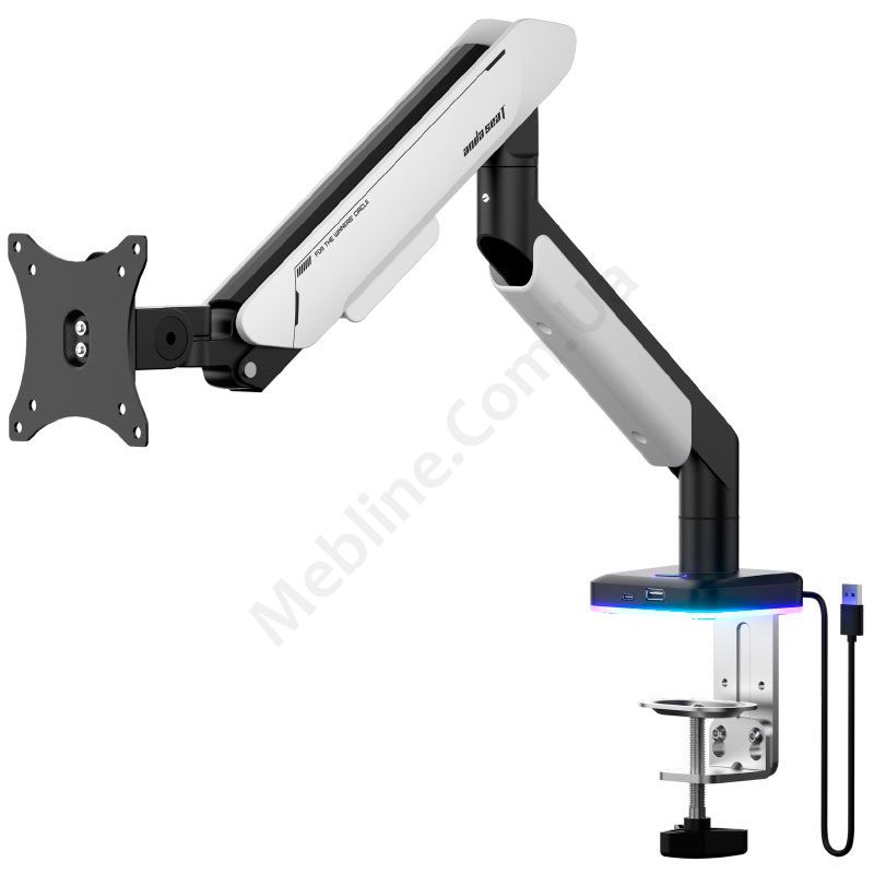 Настільне кріплення для монітора чорно-білого кольору з підсвічуванням та портами USB.