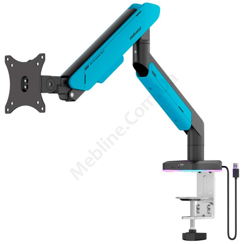 Настільне кріплення для монітора чорно-білого кольору з підсвічуванням та портами USB.