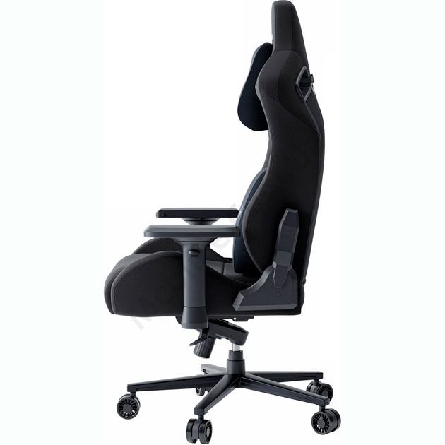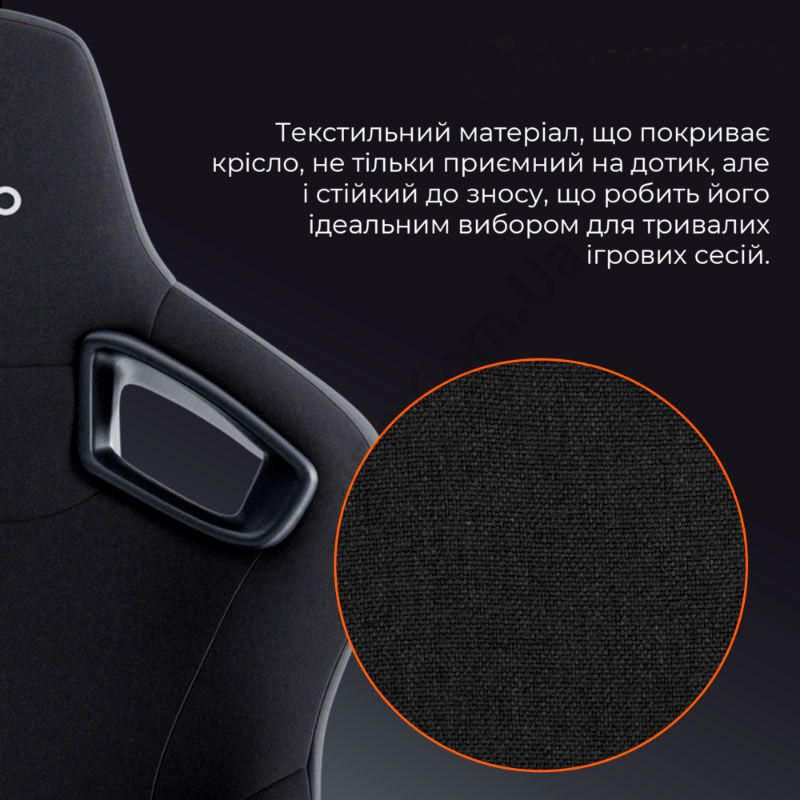 Геймерське крісло з бічною підтримкою, механізмом Tilt, вільним гойданням, текстильною оббивкою чорного кольору.