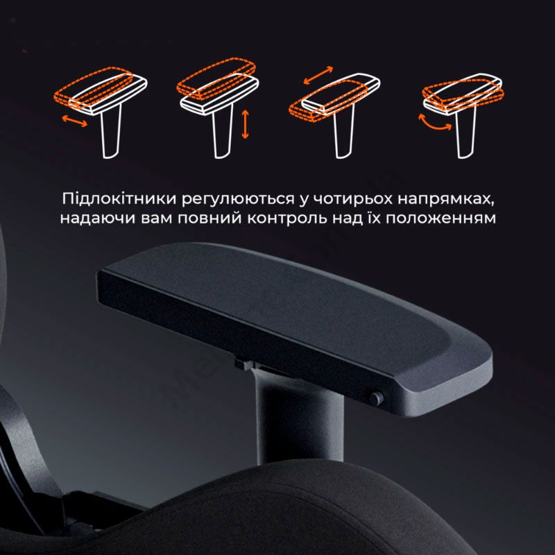 - Підлокітники 4D регулюються у чотирьох напрямках.