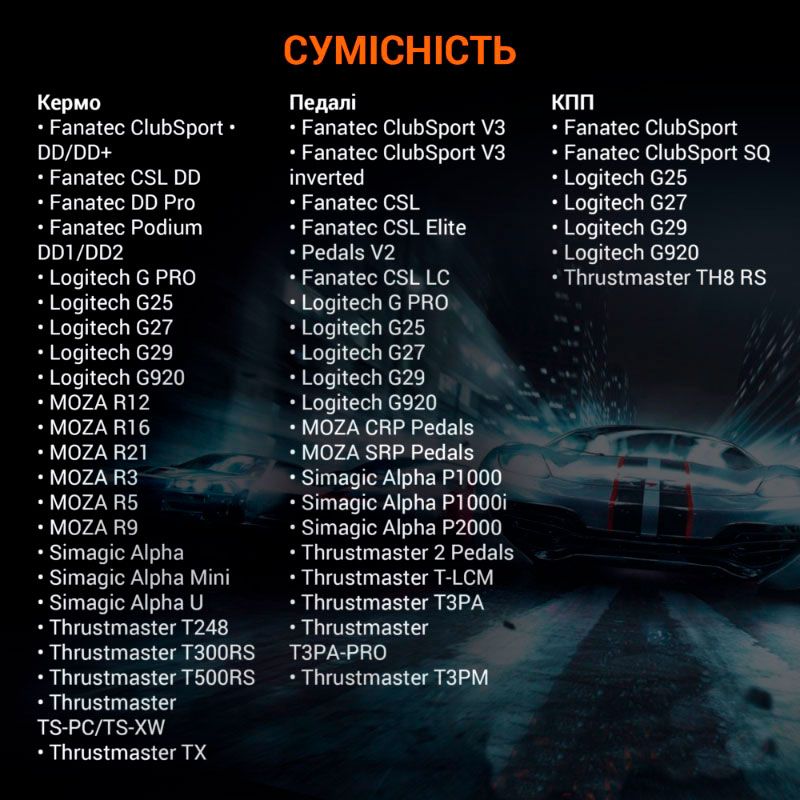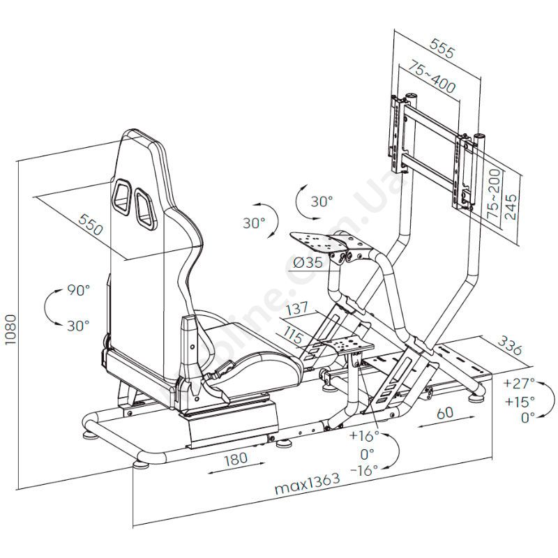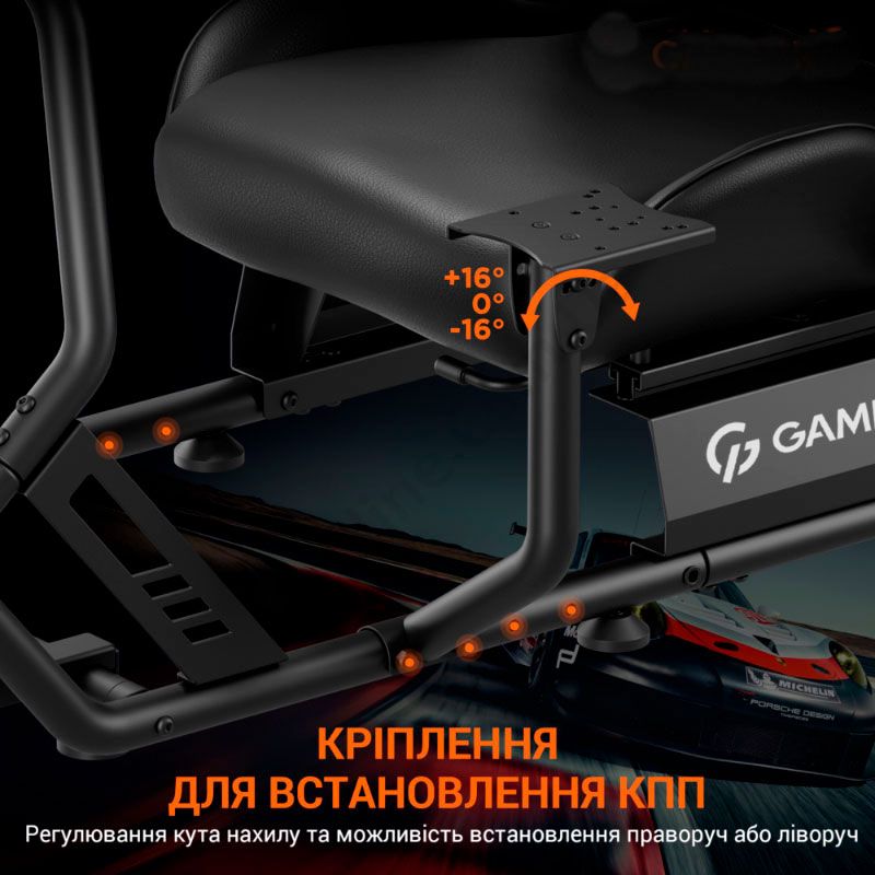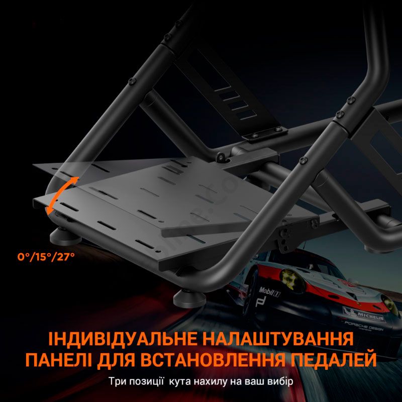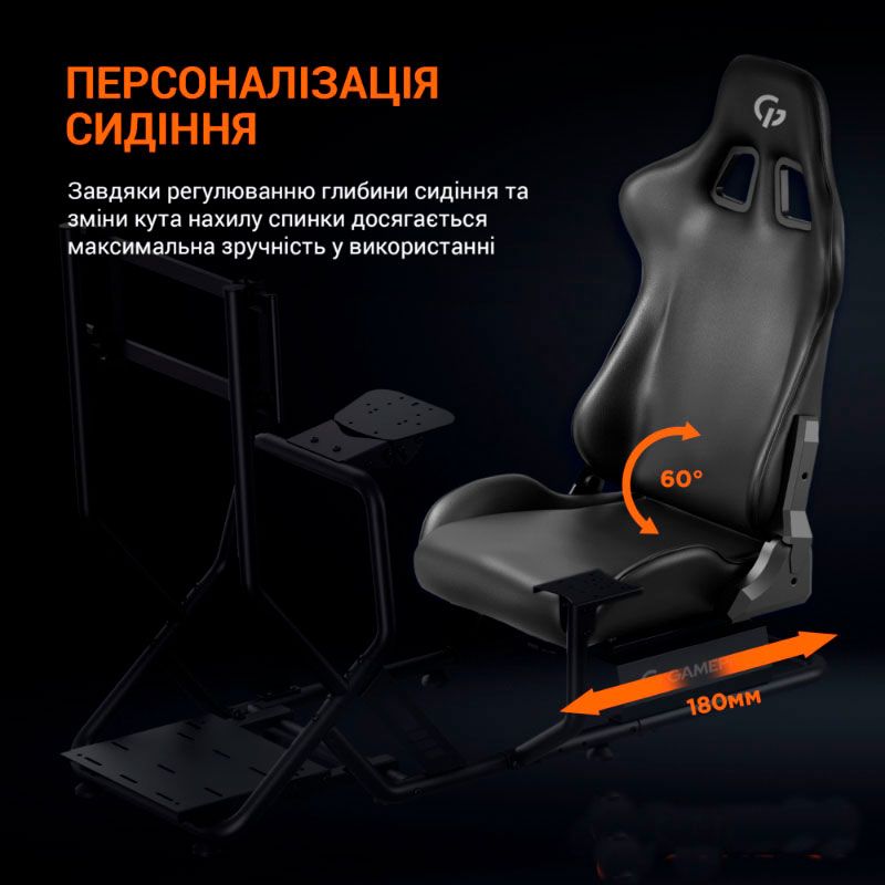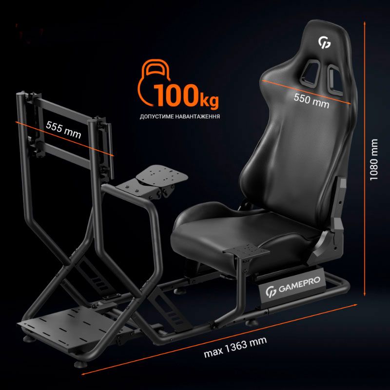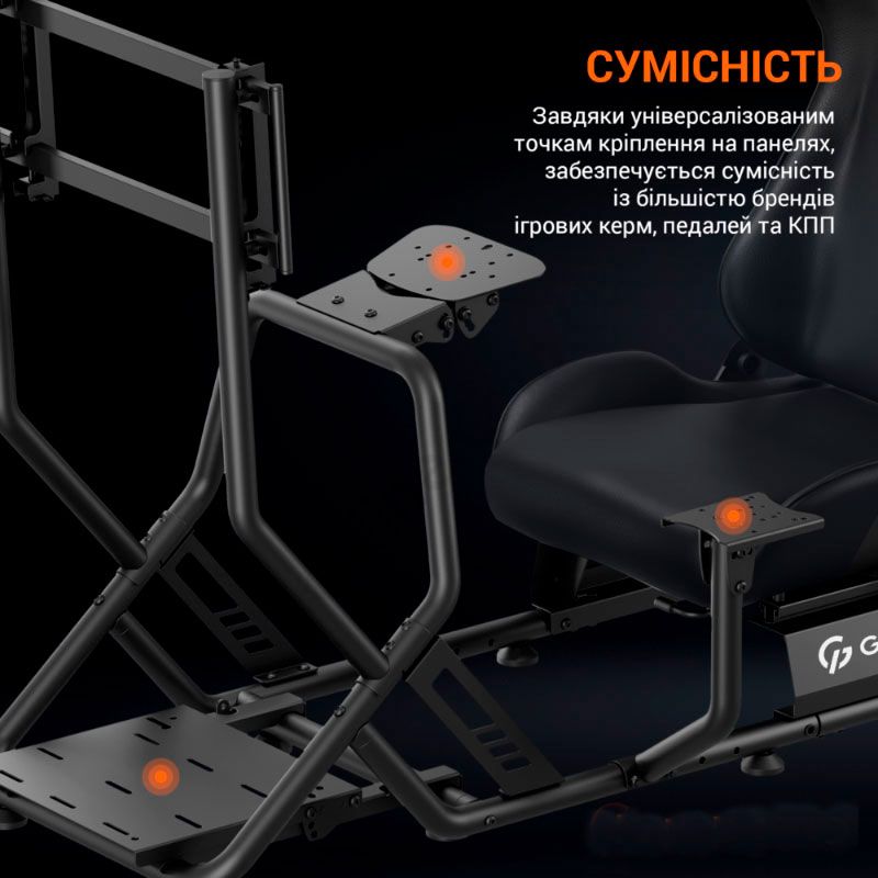 Геймерський кокпіт з можливістю кріплення керма, коробки передач, монітора та педалей.