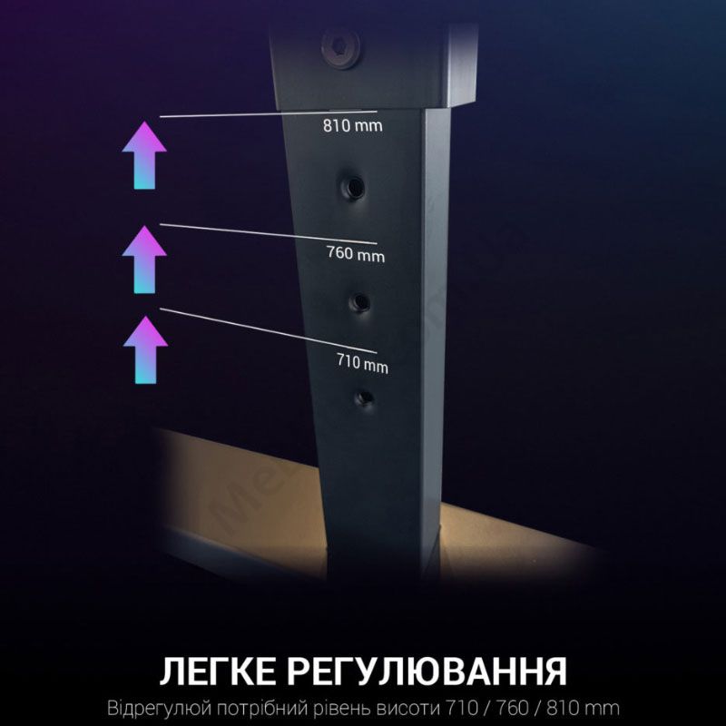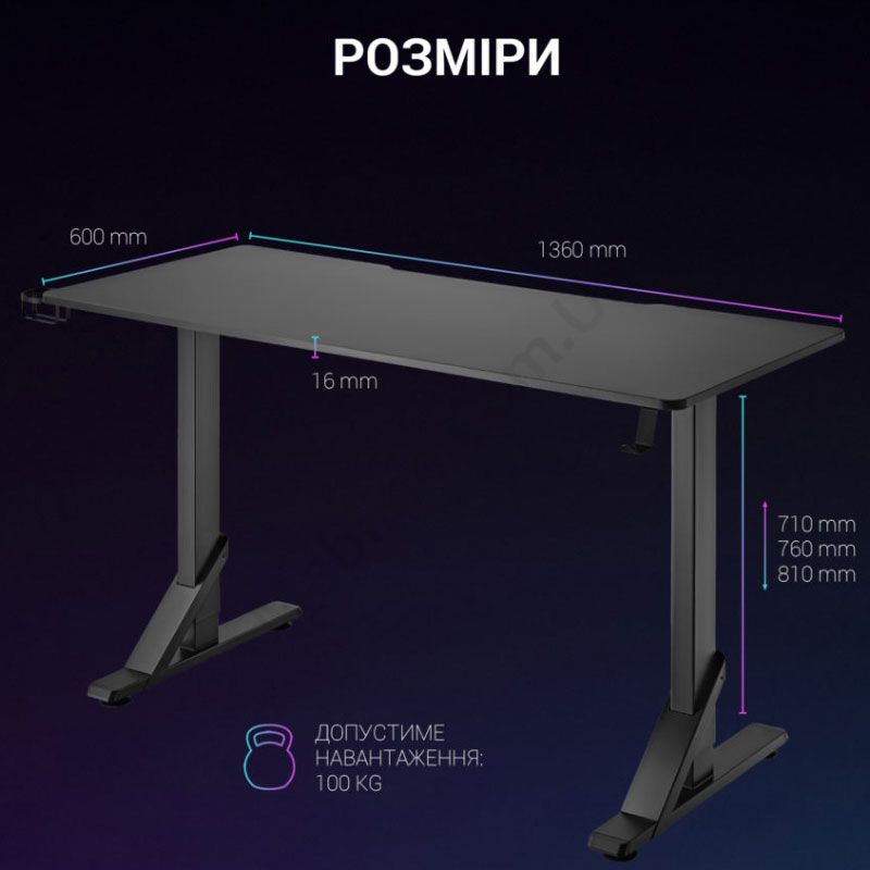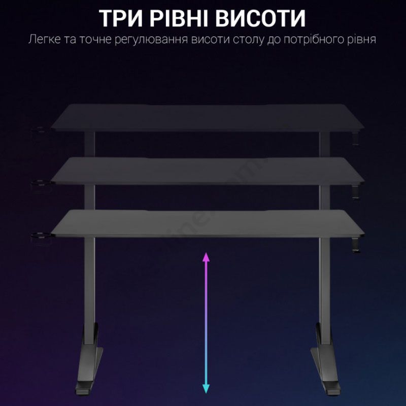 Геймерський комп’ютерний стіл з регулюванням висоти, підстаканником та гачком для навушників.