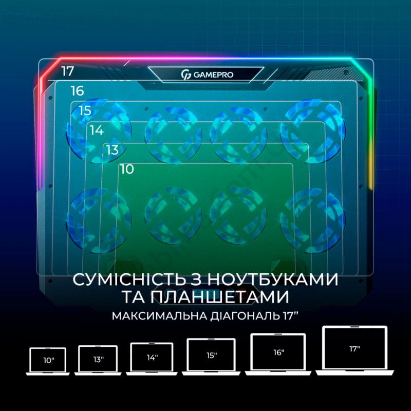 - Підходить для ноутбуків, діагоналлю від 10" до 17".