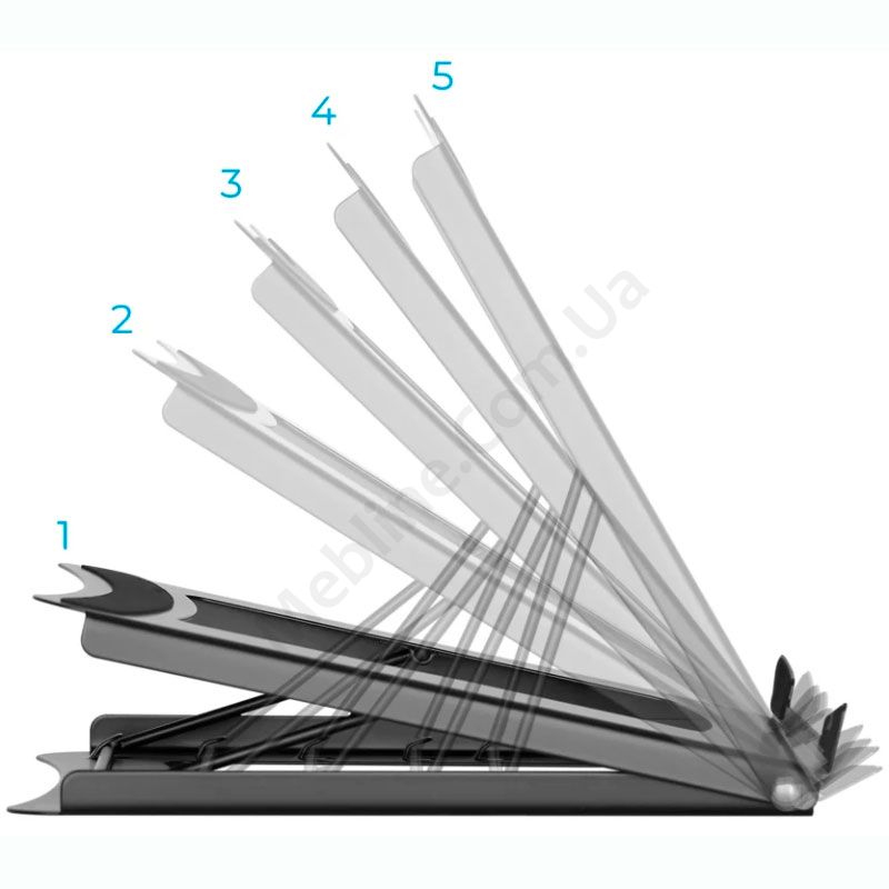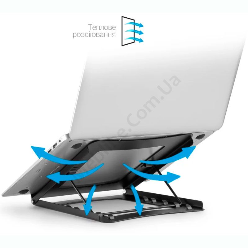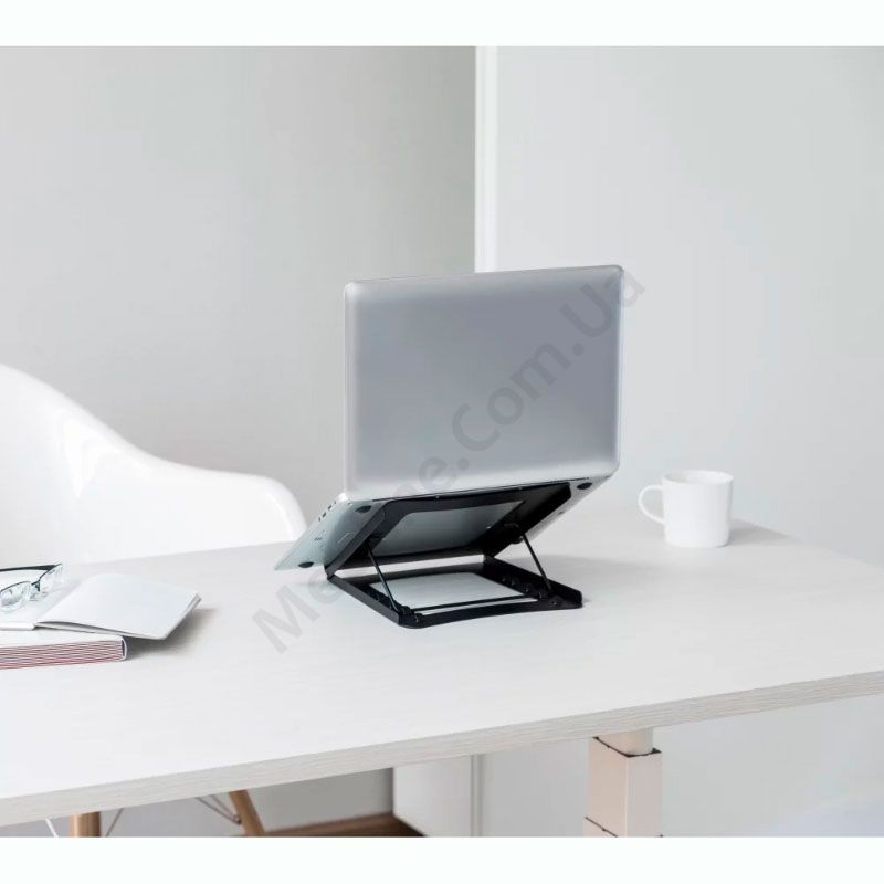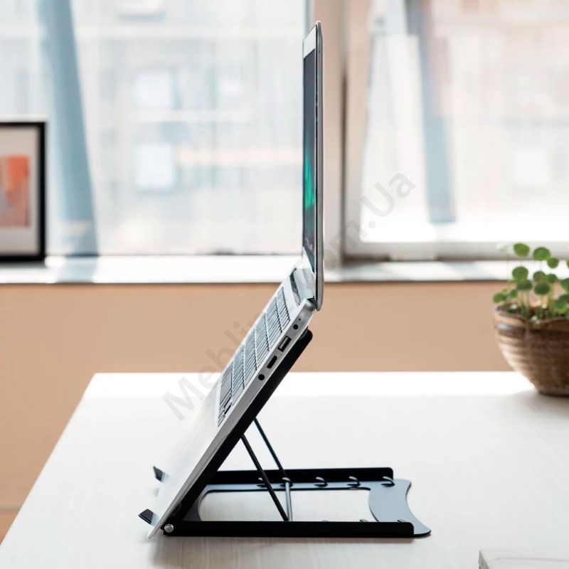 - Піднімає ноутбук до рівня очей або до рівня другого монітора, забезпечує кращу циркуляцію повітря.
