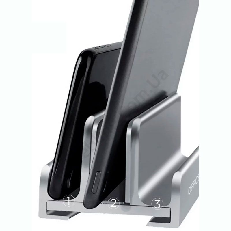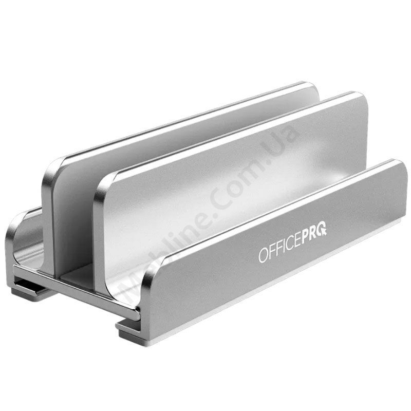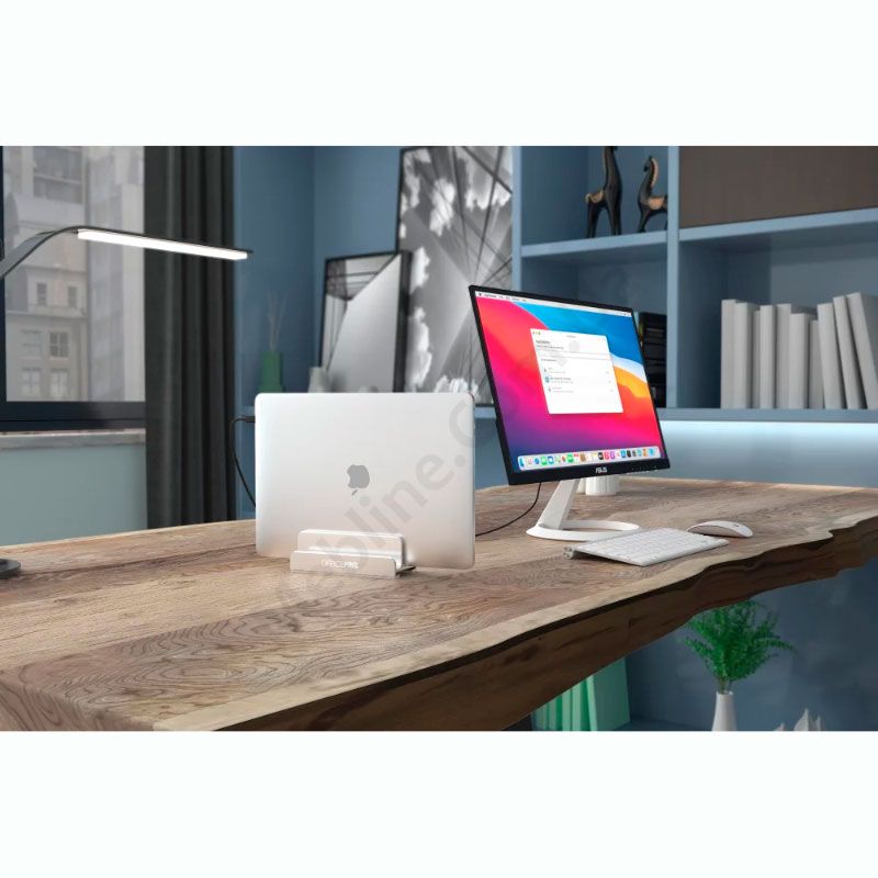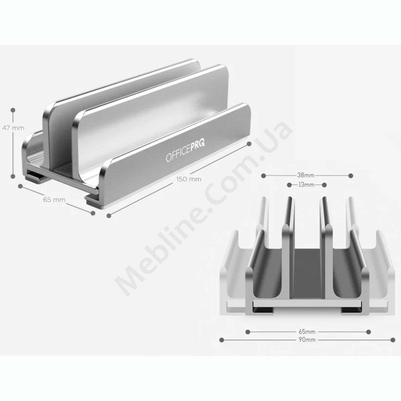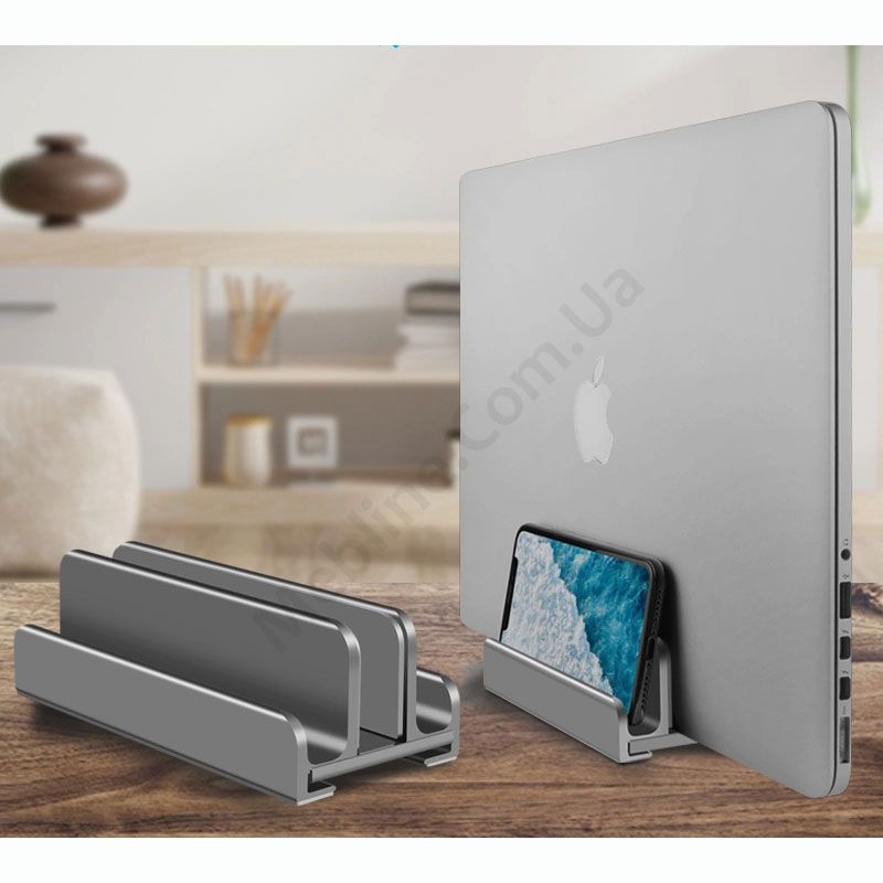 Вертикальна підставка під ноутбук, телефон або планшет, срібного кольору.