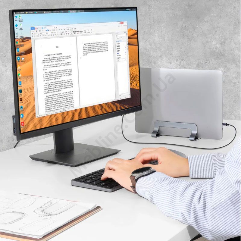 Вертикальна підставка під ноутбук, телефон або планшет, сірого кольору.