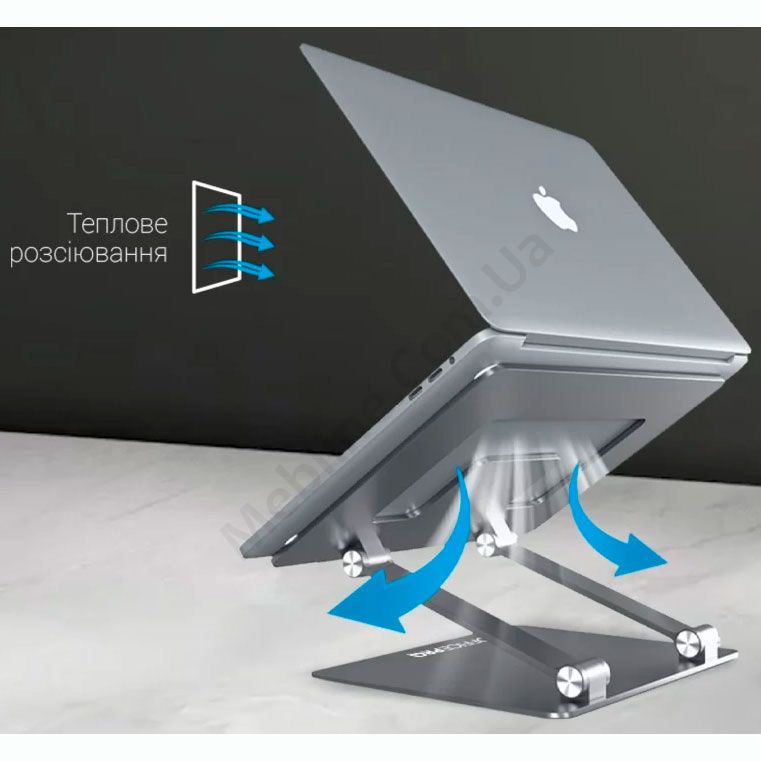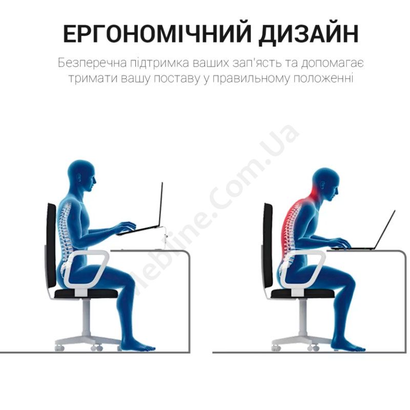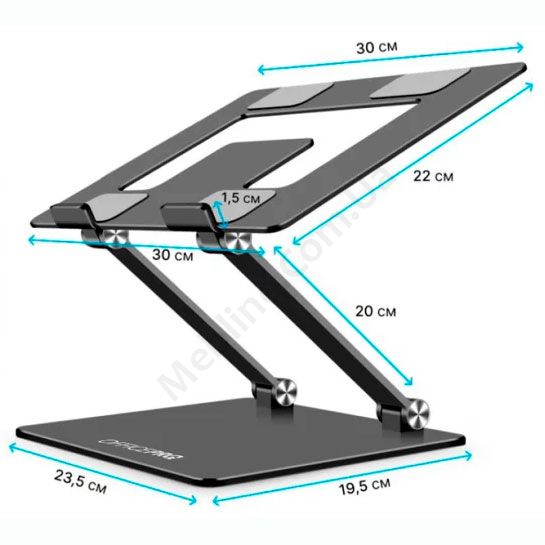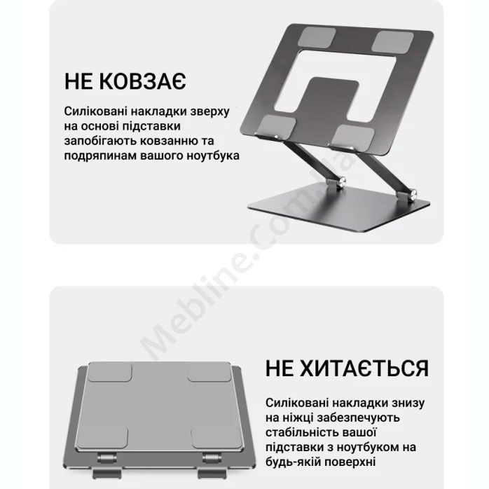- Піднімає ноутбук до рівня очей або до рівня другого монітора, забезпечує кращу циркуляцію повітря.