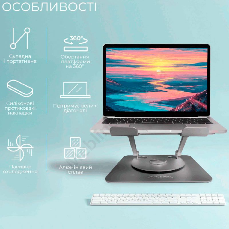 Підставка під ноутбук діагоналлю до 17" з поворотною платформою, сірого кольору.